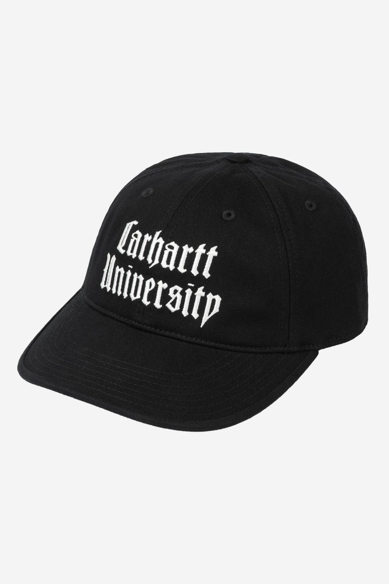 The Schooling Cap is an unstructured six-panel style made from a midweight cotton twill. It features a lined front panel as well as a firm, curved peak. An embroidered graphic appears on the front.