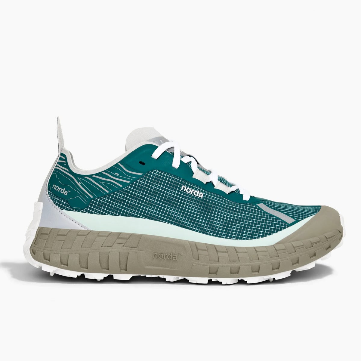 Upper - Woven with bio-based Dyneema® for the highest performance, abrasion resistance and the lightest footprint. Laces - Diamond design pattern with bio-based Dyneema® and recycled polyester. Hi-Vis Reflective - Front to rear for 360° visibility. norda™ Lock System - Ultra light and comfortable sock, gusset construction for the ultimate fit. Insole - Custom designed eTPU for the highest possible energy absorption and return. Midsole - Proprietary norda™ x Arnitel® TPEE blend Soleplate - norda™ x Vibram® exclusive sole with Litebase® and Megagrip®. 5mm lugs.
